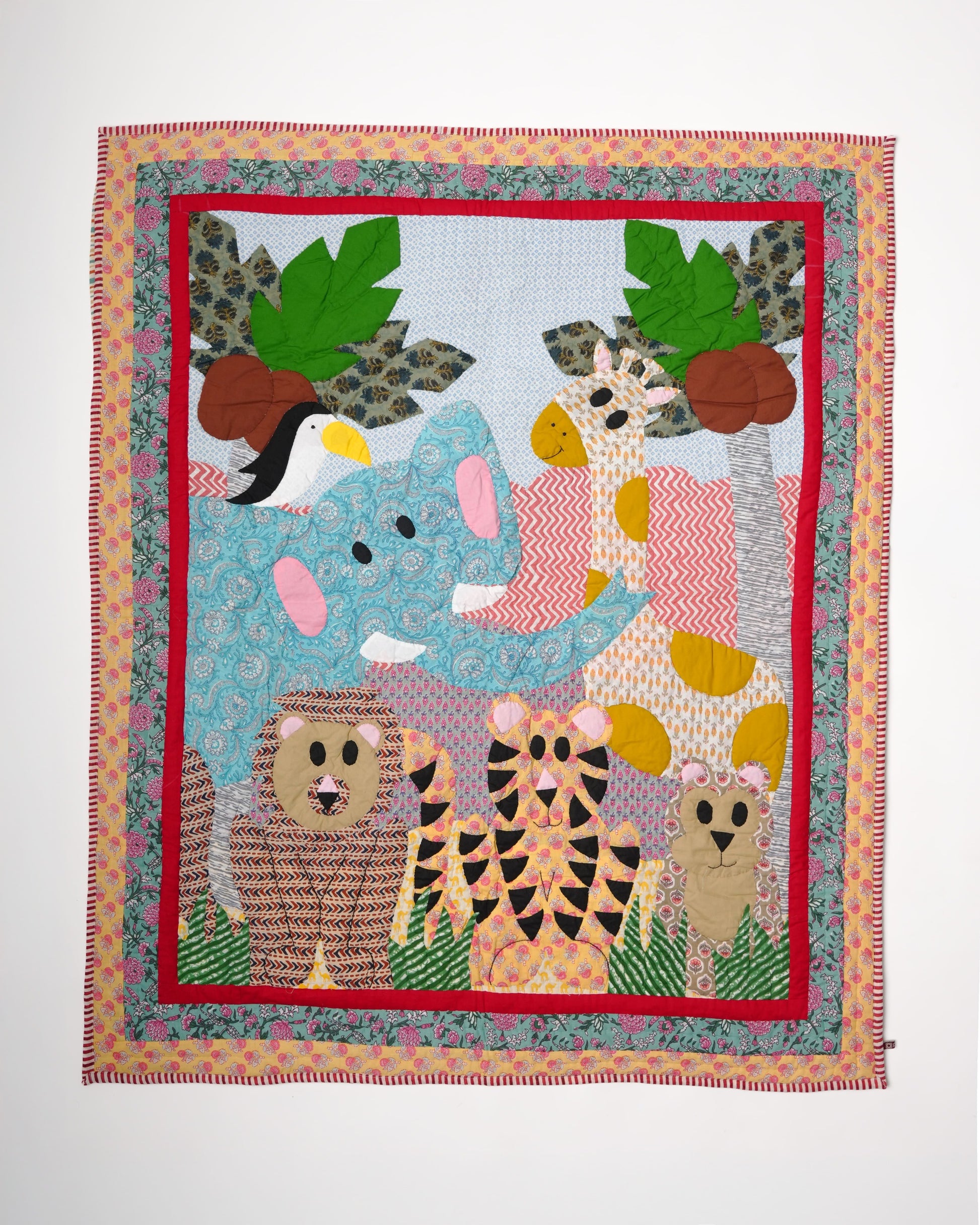 Step into the joyful world of Animal Kingdom, where playful elephants, mischievous monkeys, tall giraffes, and cheerful birds come together in a lively celebration. Lovingly handcrafted by the Didis of Purkal Stree Shakti, this vibrant quilt features detailed appliquรฉ work and thoughtful craftsmanship in every stitch. Designed to inspire storytelling and spark imagination, it wraps your little one in warmth and comfort, filling their space with colour, joy, and sweet dreams night after night.๐ฆ๐๐