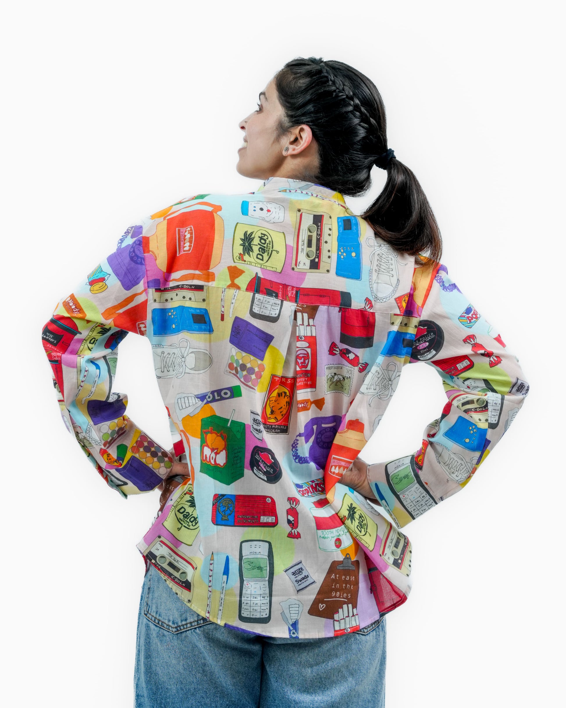 Designed to spark memories of growing up in the 90s, this shirt brings colour, fun, and a sense of carefree nostalgia into everyday dressing. Each piece carries its own charm, celebrating a time when joy was found in the little things.