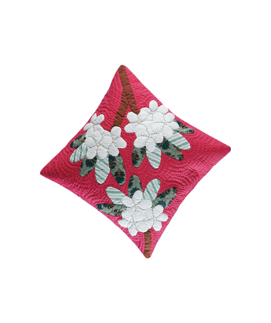 Vibrant and graceful, our Champa Cushion Cover is set on a gentle pink base that brings a calm, uplifting feel to your space. The champa flowers are carefully hand appliquéd and hand quilted, adding texture, detail, and a quiet elegance. Thoughtfully handcrafted by the Didis of Purkal Stree Shakti, it adds a warm and uplifting touch to any corner.